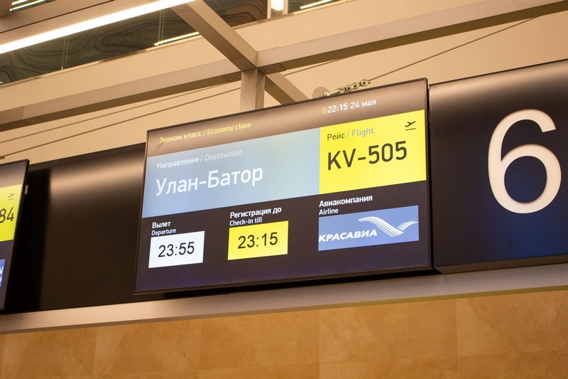 - из Улан-Батора: вылет в 20:40, прилет в 8:10. Время в пути — 3 часа 30 минут.