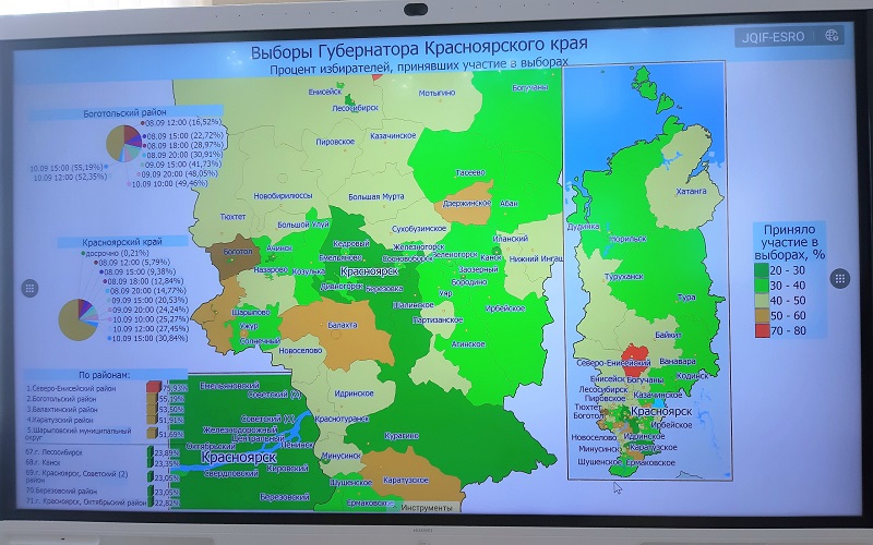 По данным на 15:00 десятого сентября, на выборах губернатора явка составила 30,84 %, на дополнительных выборах депутата Государственной Думы по Дивногорскому одномандатному избирательному округу № 56 — 31,01 %.