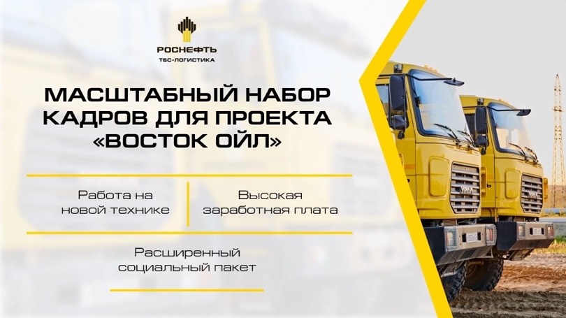 Единый транспортный оператор проекта — ООО «ТБС-Логистика» — обслуживает автопарк «Восток Ойл». Численность работников «ТБС-Логистики», занятых в реализации проекта, составит более 14 000 человек к 2025 году. «ТБС-Логистика» приглашает к сотрудничеству соискателей как имеющих опыт работы в транспортной логистике, так и желающих его приобрести.