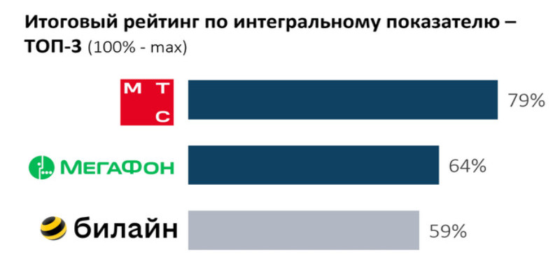 На втором месте оказался «Мегафон» — 64 %, третью позицию занял «Билайн» — 59 %. В топ-5 также вошли T2 и «Ростелеком».