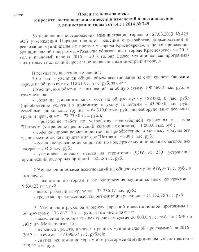 В горсовете вчера рассматривался вопрос о корректировке программы по развитию образования — представители управления и курирующая социальный блок заместитель главы города Ольга Карлова просили перераспределить деньги в программе с одной статьи на другую. Так, судя по пояснительной записке, возникла экономия на торгах, образовались «невостребованные деньги», образовалась экономия на общую сумму в 56,9 млн рублей. Однако в другом пункте пояснительной записки значится, что для обеспечения детей местами в детсадах мэрии требуется около 188 млн рублей, а в общем увеличение бюджета программы должно составить 310,2 млн рублей.