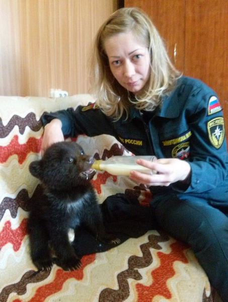 В Богучанском районе Красноярского края найденный в тайге медвежонок признал «мамой» пожарного инспектора.