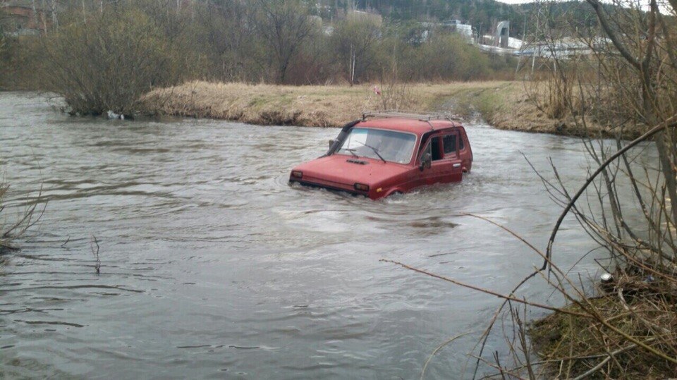 В реку Базаиха на правобережье Красноярска съехал и застрял автомобиль. Как сообщили Newslab.ru очевидцы, доехав до середины реки, «Нива» примерно наполовину ушла под воду. По их же словам, из «затонувшего» автомобиля на берег выбрались двое мужчин, якобы находившихся в состоянии опьянения. Одного из них увезли на скорой с переохлаждением, а второй остался на берегу. Кроме того, спасшиеся заявили, что в машине остался третий их товарищ, который якобы «захлебнулся». Вся эта информация еще будет проверяться.