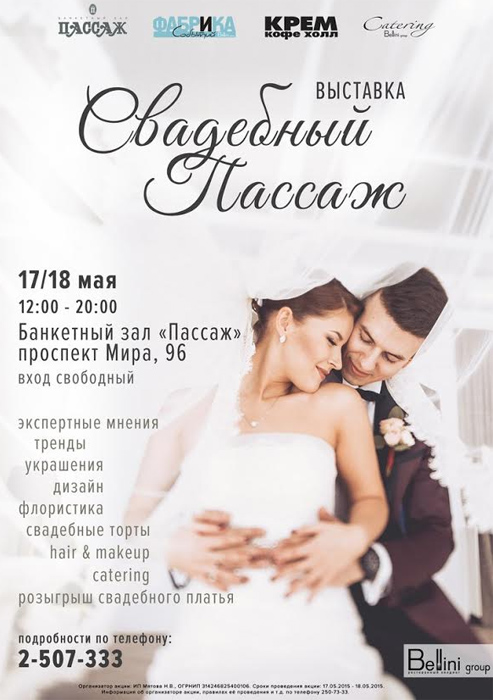 17 и 18 мая ресторанный холдинг Bellini group приглашает красноярцев посетить выставку «Свадебный пассаж», на которой будут представлены актуальные предложения свадебной индустрии. В едином пространстве соберутся авторитетные эксперты — декораторы, стилисты, ювелиры, кондитеры, свадебные распорядители, модельеры и многие другие.