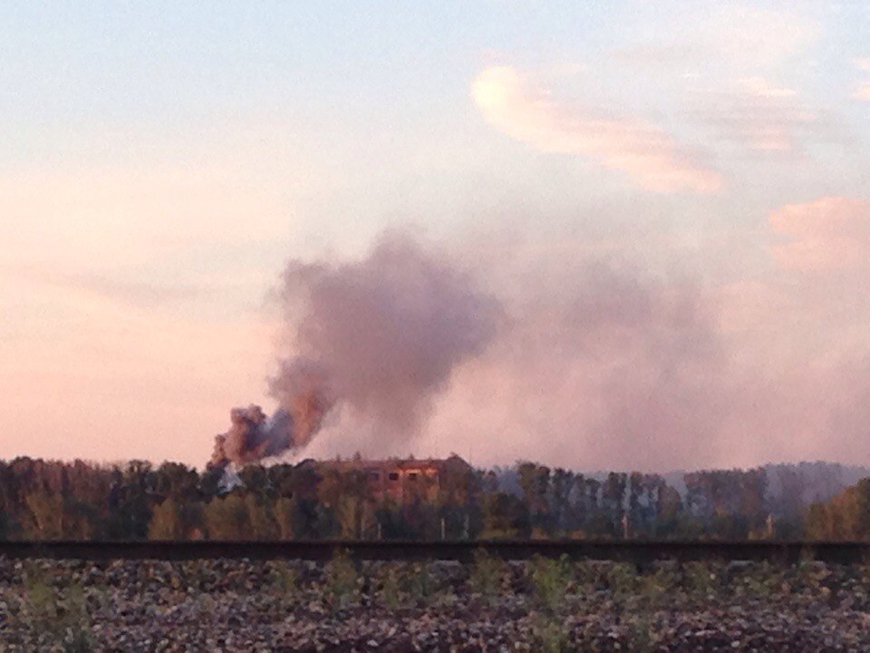 Подозрительное здание, из которого шел дым, находится на территории химкомбината «Енисей», имущество которого недавно было выставлено на продажу. Хотя сам комбинат не функционирует, его помещения сдаются.