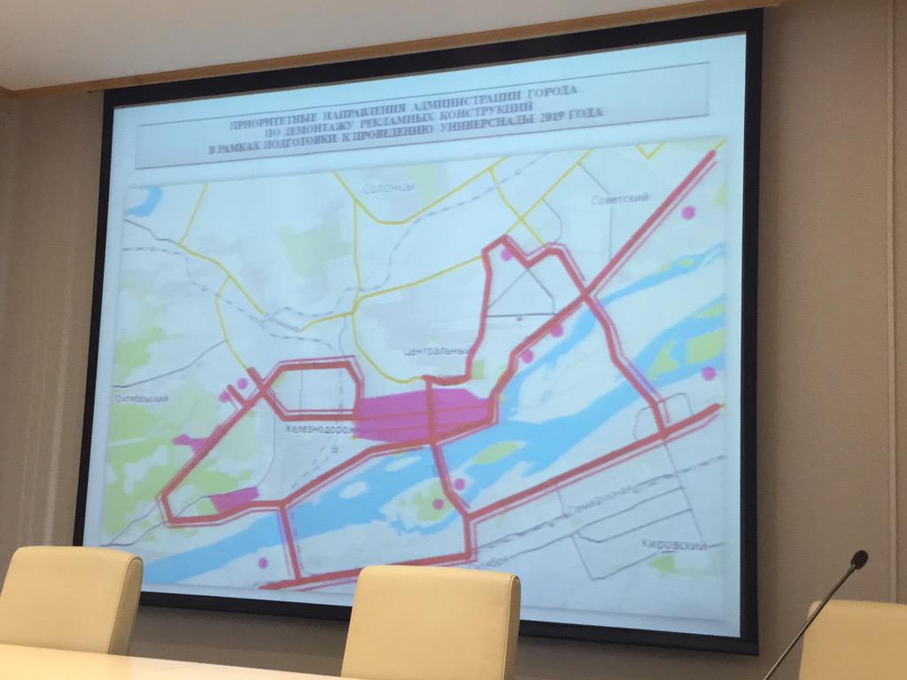 Андрей Макаров подчеркнул, что в эти этапы включены именно те районы, которые активно будут задействованы при проведении зимних студенческих игр в Красноярске. Однако оставшиеся территории города также без внимания властей не останутся, подчеркнул главный архитектор. По его словам, на сегодняшний день необходимо изменить сам подход к демонтажу незаконных рекламных конструкций, подойти комплексно к «зачистке» Красноярска, чтобы результат от такой работы был заметен сразу.