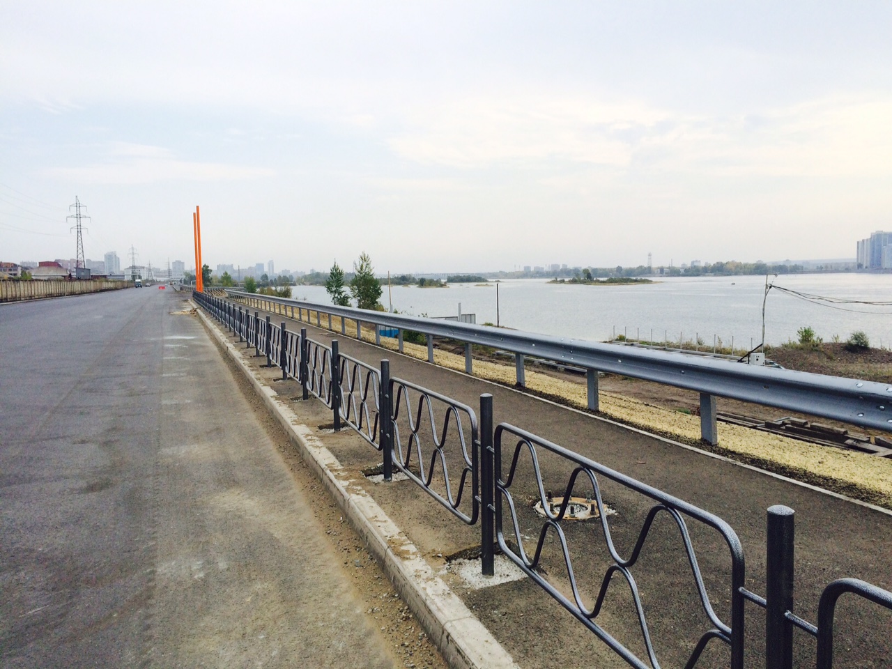 Жители Красноярска усомнились в правильности установки отбойника и декоративного забора по улице Дубровинского, которая в скором времени станет первым левобережным съездом с четвертого моста.