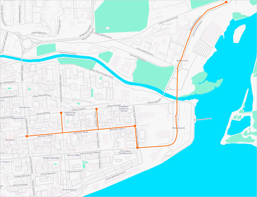 - по проспекту Мира — от ул. Сурикова до ул. Каратанова;