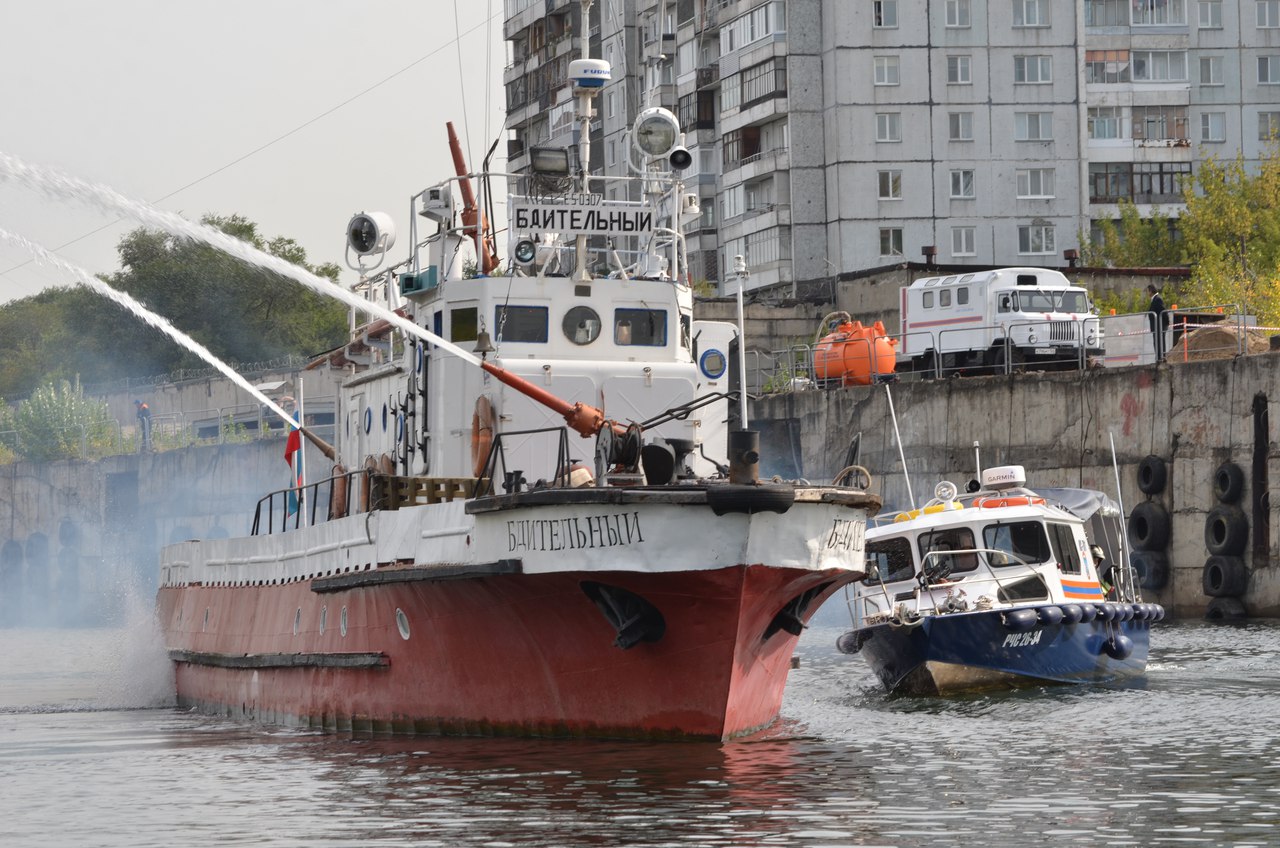 Учения состоялись сегодня на территории судоремонтного завода — по легенде учений на теплоходе «Шарыпово» произошло короткое замыкание с последующим возгоранием и распространением пожара на машинное отделение. На теплоходе в это время находилась команда, которая и начала тушение своими силами.