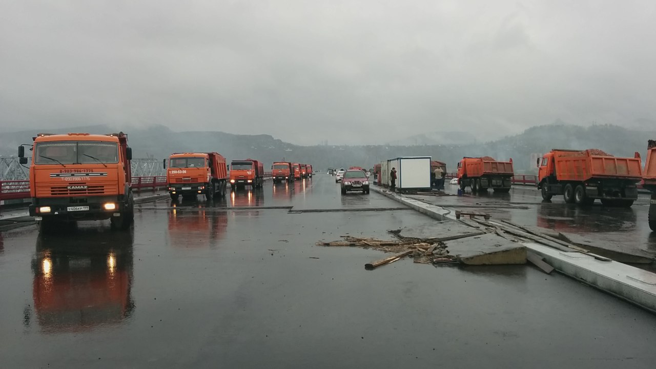 Сегодня на четвертом мосту прошли испытания, на основе которых строители будут готовить документы к сдаче моста в эксплуатацию. Проверка проводилась с помощью 16 груженых КамАЗов весом в 25 тонн каждый. Они несколько раз в две колонны проехали по мосту с разной скоростью, с разными интервалами между машинами.