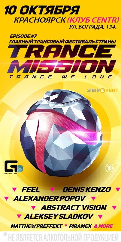 10 октября в Красноярске пройдет главный трансовый фестиваль страны Trancemission (episode #7). За 10 лет своего существования он получил международное признание и высокие оценки самых именитых музыкантов мира. В разное время на нем выступали Armin van Buuren, Paul van Dyk, Dash Berlin, Above & Beyond и многие другие.