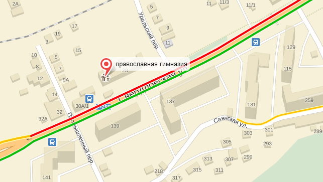 Отметим, что судя по сервису Яндекс.Карты, в здании находится православная гимназия, а на сайте Трехсвятительского храма Красноярской епархии указано, что по этому адресу проходят занятия воскресной христианской школы.