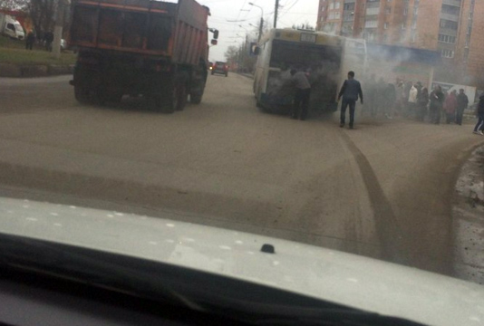 По словам пассажиров, на остановке «Поликлиника» загорелся автобус, следовавший по 63 маршруту. Судя по фотографиям, появившимся в социальных сетях, из заднего отсека автобуса шел сильный дым. Все пассажиры из него эвакуировались самостоятельно.