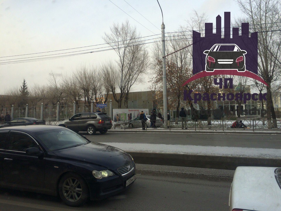 В Железнодорожном районе Красноярска автомобиль после столкновения с другой машиной сбил пешехода. Как рассказали очевидцы, ДТП произошло днем 3 ноября в районе перекрестка пр. Свободный — ул. Омская. Свидетели также предположили, что машина протаранила металлический забор и сбила пешехода — он лежал в нескольких метрах от транспортного средства.