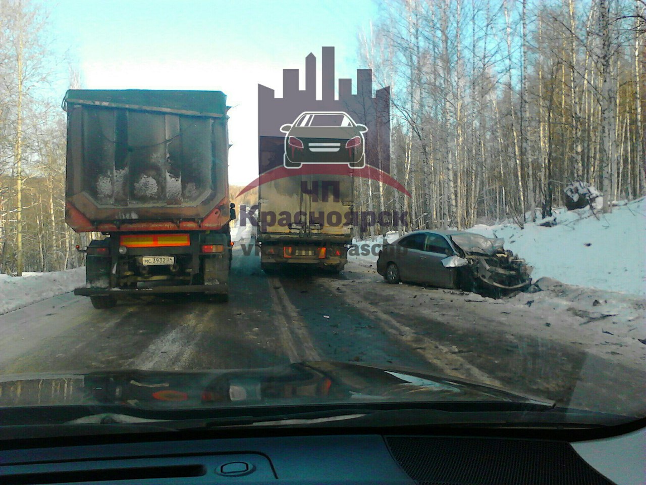 Информация об аварии, произошедшей сегодня днем в Балахтинском районе, недалеко от кафе «Тайга», появилась в социальных сетях. На фотографиях видно, что автомобиль Toyota, столкнувшийся с большегрузом, получил серьезные повреждения.
