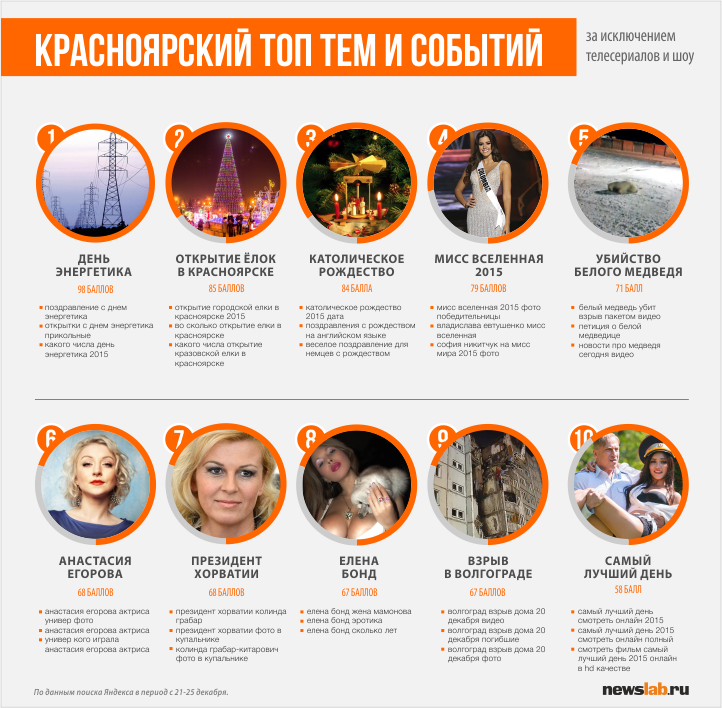 Мы посмотрели, какие запросы красноярцы делали в поиске Яндекса на минувшей неделе, с 21 по 25 декабря.