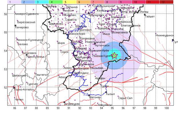 Интенсивность сотрясений в эпицентре составила около 2 баллов. По данным сейсмического монитора СФО, магнитуда землетрясения, случившегося на расстоянии 293 км от Красноярска, составила 4.0.