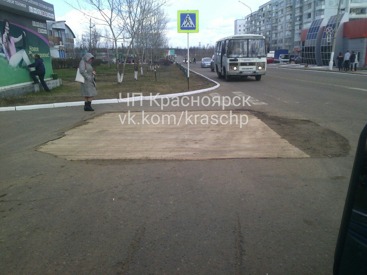 Красноярцев позабавили фотографии из Кодинска, где яму на дороге, по заявлениям местных жителей, «отремонтировали» при помощи досок. Фотографии проведенного «ремонта» вместе с изображениями других дорожных выбоин 6 мая опубликовал один из пожаловавшихся на состояние дорог кодинцев — сперва в группе, посвященной жизни районного центра. Затем же она была размещена и в красноярском сообществе.