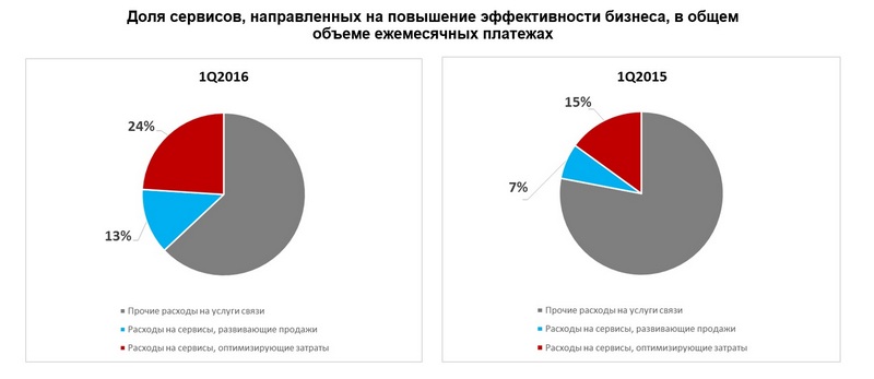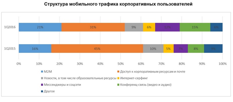 Покупка решений по управлению телематическими SIM-картами (или M2M-решений) в первом выросла в 1,3 раза по сравнению с первым кварталом 2015 года. Доля М2М-трафика в общем интернет-трафике корпоративных клиентов выросла на треть — до 21 %.