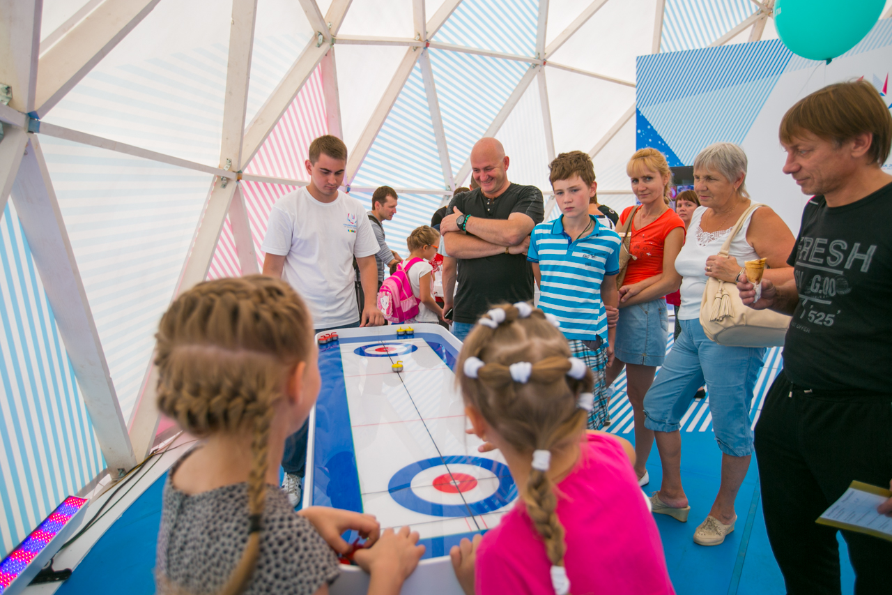 В 11:30 начнут работать локации на площадке перед Экспо-шатром Зимней универсиады-2019. Все желающие смогут проверить свои знания спортивной истории в викторинах. Ровно в полдень состоится торжественное открытие шатра. Посетители праздника станут активными участниками церемонии. Любителей активного отдыха ждет фитнес-разминка «1000 шагов», а в шатре посетителей ждут музейная экспозиция, сбитень-бар, инфомат и игровые локации.