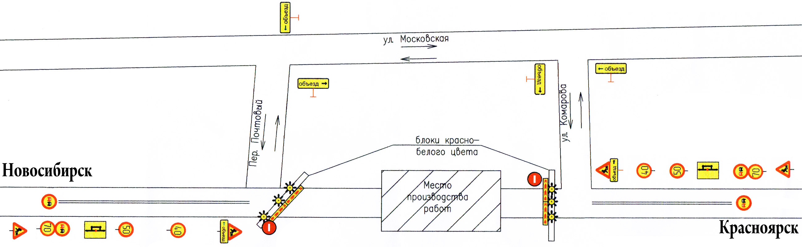 В течение этого времени движение легкового транспорта будет осуществляться через улицы поселка Емельяново: Комарова, Московская и Почтовый переулок. Движение грузового транспорта будет приостановлено до завершения работ.