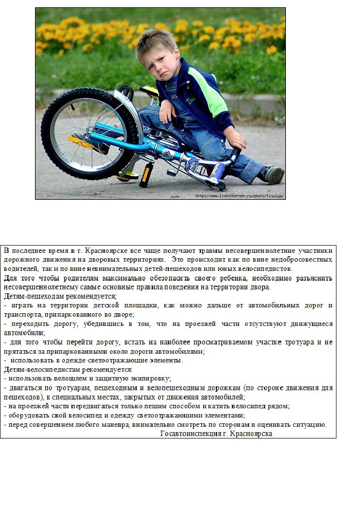 После серии ДТП во дворах красноярские госавтоинспекторы попросили ТСЖ помочь в проведении профилактической работы среди жителей. По данным пресс-службы городской дорожной полиции, только за весенне-летний период во дворах Красноярска произошло уже 17 ДТП с участием несовершеннолетних. В большинстве из них виноваты были сами дети, которые выбежали либо выехали на велосипеде прямо под колеса проезжающего автотранспорта.