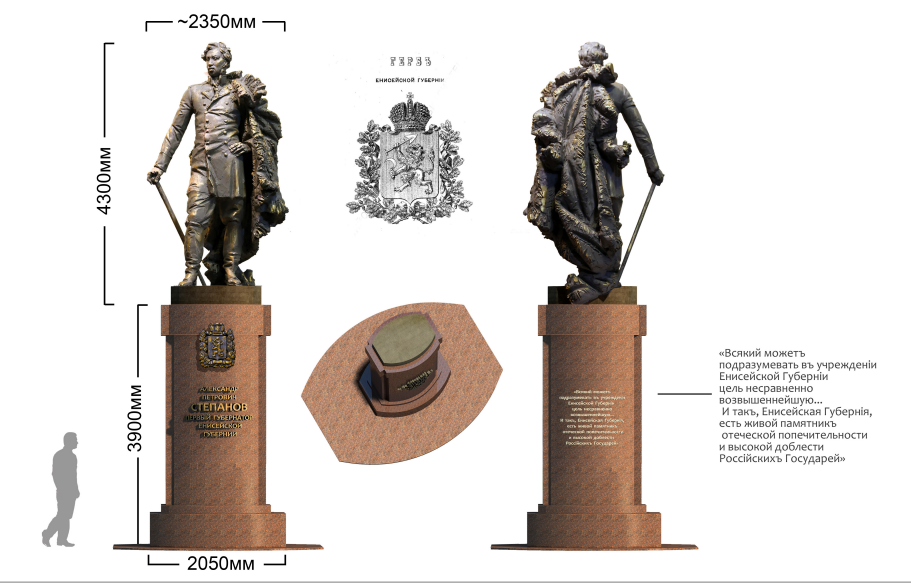 Делегация из Красноярска приняла в Москве модель памятника первому енисейскому губернатору Александру Степанову. Информация об этом, а также фотография памятника в мягком материале в натуральную величину появилась в Instagram министерства культуры Красноярского края.
