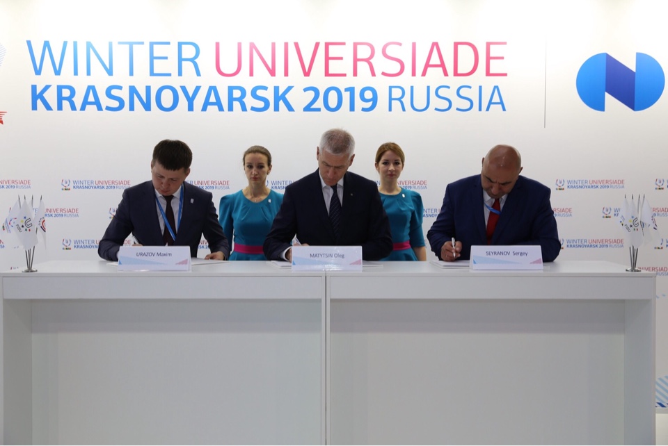 Сегодня в рамках деловой программы Международного форума «Россия — спортивная держава» во Владимирской области состоялось подписание трехстороннего договора о принятии обязательств по проведению Форума FISU 2018 в Красноярске. Свои подписи поставили президент FISU (Международная федерация студенческого спорта) Олег Матыцин, и. о. президента Российского студенческого спортивного союза Сергей Сейранов и генеральный директор Исполнительной дирекции Зимней универсиады-2019 Максим Уразов.