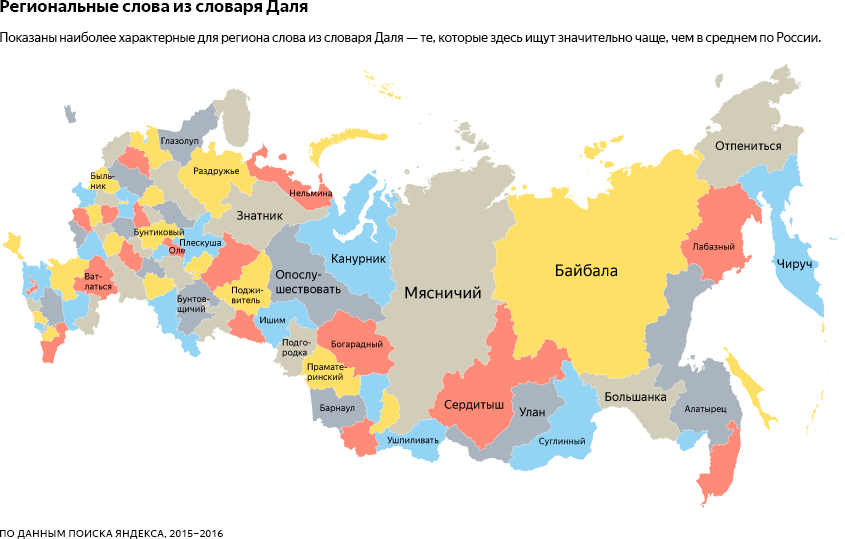В Красноярском крае таких слов всего пять. Чаще всего в поисковых запросах часть слов употребляются жителями края в значении, приведенном Далем, а часть являются омонимами: в словаре они имеют одно значение, а в запросах красноярцев — другое.