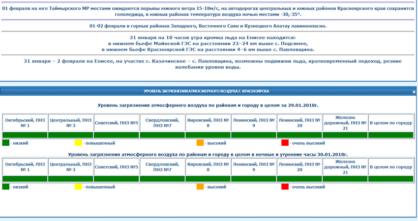 Согласно данным красноярских активистов, опубликованным в социальной сети, уровень загрязнения воздуха 31 января также не превышен. Впрочем, показания их датчиков не являются официальными.