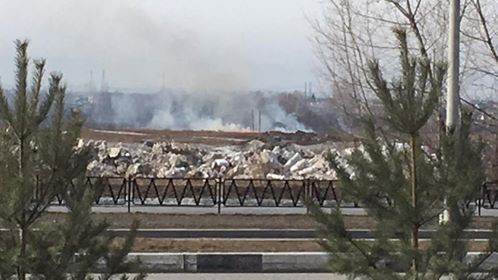 «Подрядчики, с которыми заключен контракт на уборку, вывозили всю зиму снег на это поле. Единственная дорога, которая на него ведет, оказалась в двухметровом рве и пожарные просто не смогли туда проехать. Пожар распространился, в том числе и на деревья и может уйти в лес», — объяснил Алексей Бойков.