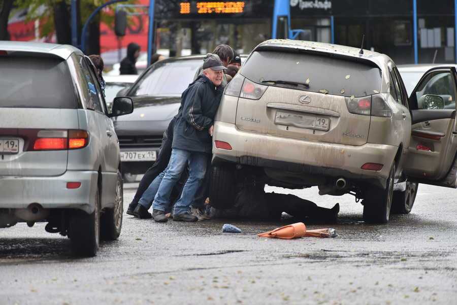 В столице Хакасии автоледи на Lexus сбила женщину и ее внучку. Для того, чтобы достать пенсинерку, очевидцы руками поднимали машину. Видеозапись происшествия появилась сегодня в социальных сетях.