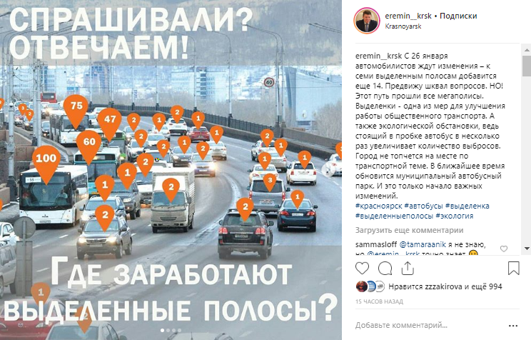 В комментариях к посту мэра красноярцы всё же начали задавать вопросы. Многие привели довод, что Красноярск не мегаполис. Тут, в отличие от Москвы, есть метро как альтернативный транспорт и гораздо больше выделенных полос. Кто-то предположил, что из-за «выделенок» работа маршруток, а тем более экология не улучшатся, пробок станет еще больше: