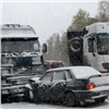 На трассе под Балахтой из-за снегопада образовалась большая пробка (видео)