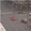 В центре Красноярска отлетевший на тротуар ВАЗ едва не сбил пешехода (видео)