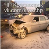 Выехавшая на встречку «Волга» в Красноярске протаранила две машины и загорелась (видео)