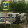 В Красноярске Nissan на встречной врезался в полицейский УАЗ