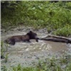 Из-за жары медведи на красноярских «Столбах» устроили купание в луже (видео)