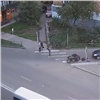 В Красноярске автоледи наехала на пропускавшего пешеходов мотоциклиста (видео)