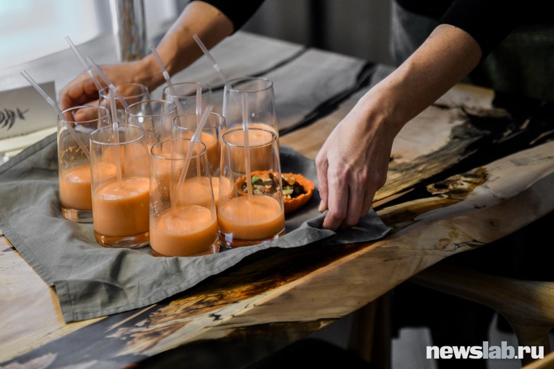 «Тарелки готовятся при температуре 60 градусов, затем отправляются в пресс-формы. Следом идет сушка, которая занимает больше всего времени. Лучше всего получаются тарелки из свеклы, так как она лучше держит форму, а сама тарелка получается более пластичной. По вкусу тарелка будет напоминать тот ингредиент, который был основой для этой тарелки», — рассказал Кирилл Кутузов, студент Института гастрономии СФУ.