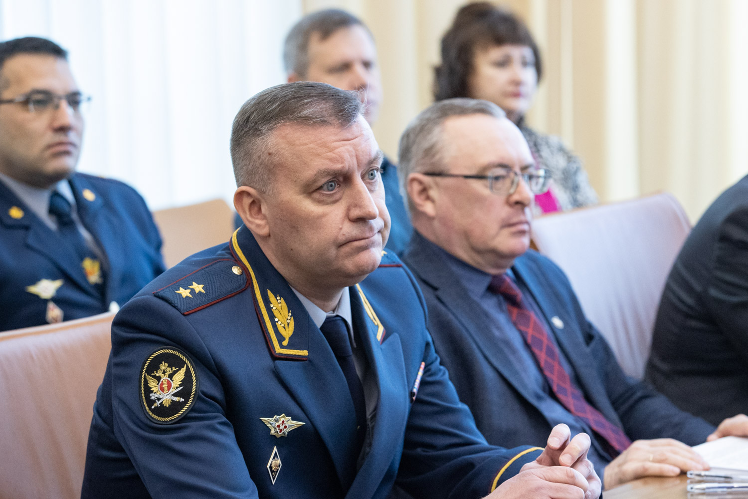 Руководитель управления рассказал депутатам о деятельности подведомственных учреждений. Он отметил, что условия содержания заключенных значительно улучшены. В учреждениях внедрена высокотехнологичная система контроля и охраны, пищеблоки оснащены современным оборудованием, оказывается 98 видов медицинской помощи. Причем медпомощь могут получить не только заключенные и сотрудники исправительных учреждений, но и жители расположенных рядом населенных пунктов. Большое значение в учреждениях отводят обучению осужденных: есть вечерняя школа, четыре профессиональных училища, в 12 филиалах которых можно получить какую-либо из 44 профессий.